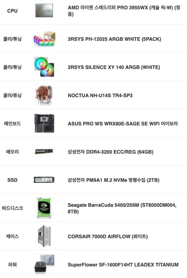 공랭 구입 근거 : https://www.techspot.com/review/1995-amd-threadripper-air-cooling/